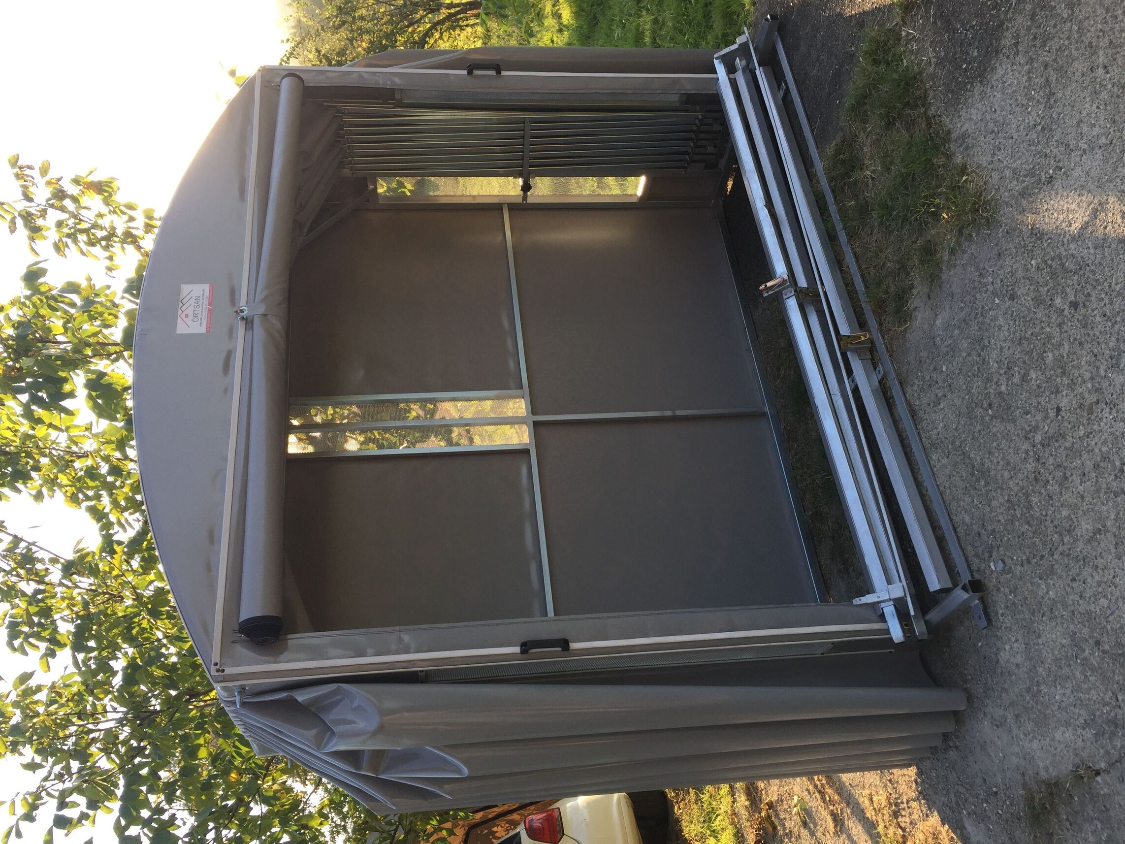 Katlanır Raylı ve Körüklü Sistem: Bu modern çadır tipi, yazlık veya villalar gibi alanlarda ruhsat gerektirmeden kullanılabilir. Su geçirmez özelliği vardır ve uzun yıllar dayanıklıdır.